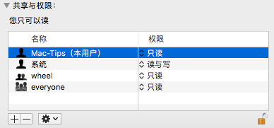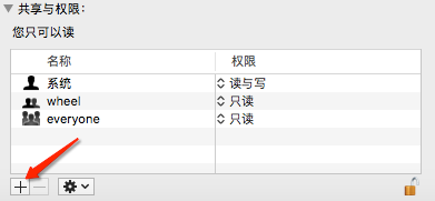 如此设置之后,拷贝文件到移动硬盘将不再需要验证,如果「名称」下面没有本用户,可点击左下角的加号以添加;