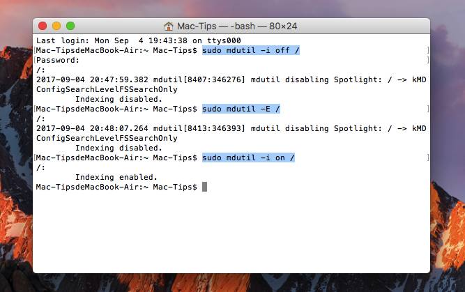 sudo mdutil -i on /(该命令用来重建索引)